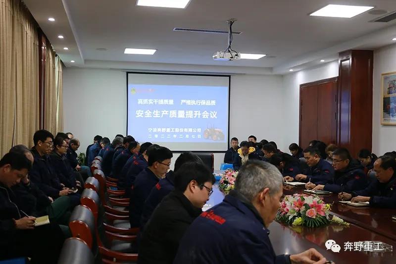 2022年2月7日,大年初七上午10點,虎年春節(jié)后開工的第一天,剛忙碌完早上的開工儀式,寧波奔野重工股份有限公司就召開由公司管理部、財務部、銷售部、采購部、物資部、生產(chǎn)部參加的安全生產(chǎn)與質(zhì)量提升大會,由董事長王興洪親自主持。