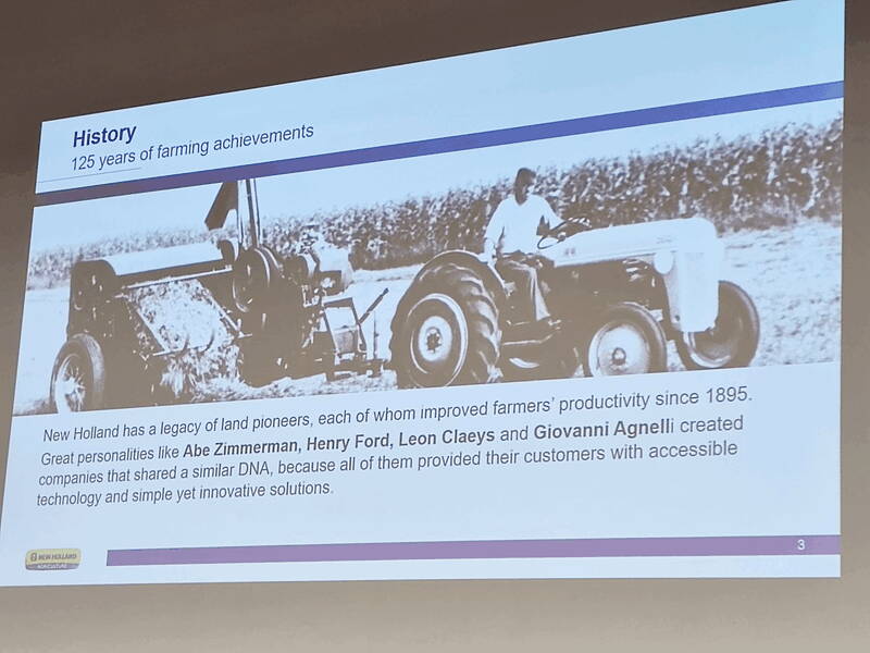 NEW HOLLAND比利時工廠是工廠考察的第二站。工作人員介紹了該品牌隸屬于CNH INDUSTRIAL集團(tuán),該集團(tuán)旗下有三大板塊業(yè)務(wù):農(nóng)業(yè)版塊、工程機(jī)械版塊、金融版塊。其中農(nóng)機(jī)版塊除了CASE、NEW HOLLAND,還有斯太爾STEYR品牌。創(chuàng)建于1895年的NEW HOLLAND一直堅持創(chuàng)新:做出歐洲第一臺自走式收割機(jī),目前葡萄收獲機(jī)是全球第一。在貼近用戶和市場的理念指導(dǎo)下,紐荷蘭在全球有33個工廠,2000多家經(jīng)銷商,銷往全球170個國家和地區(qū)。