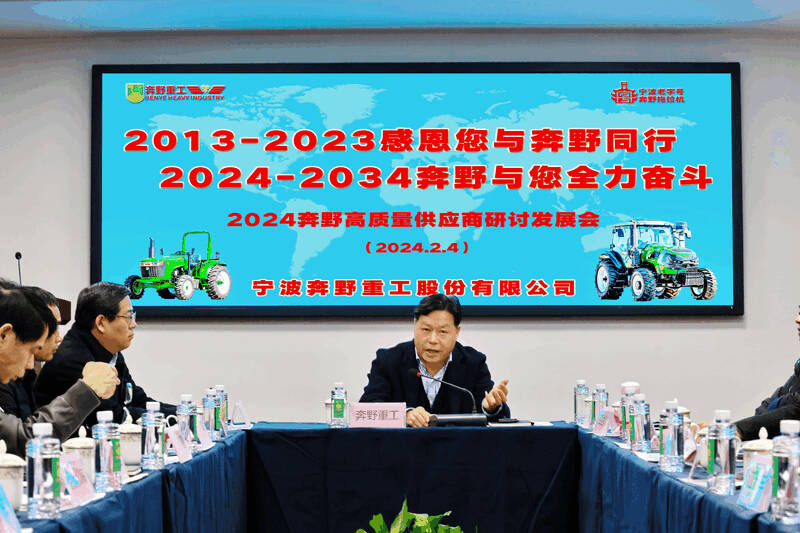 2024年2月4日,“2024 高質(zhì)量供應(yīng)商研討發(fā)展會(huì)”在寧波奔野重工股份有限公司隆重召開,會(huì)議的主題是“2013-2023感謝您與奔野同行 2024-2034奔野與您全力奮斗”,來自全國(guó)各地 20家供應(yīng)商及奔野重工技術(shù)、銷售、采購(gòu)、品質(zhì)、管理、生產(chǎn)、財(cái)務(wù)等部門中層人員共60多人歡聚一堂共商合作發(fā)展大計(jì)。