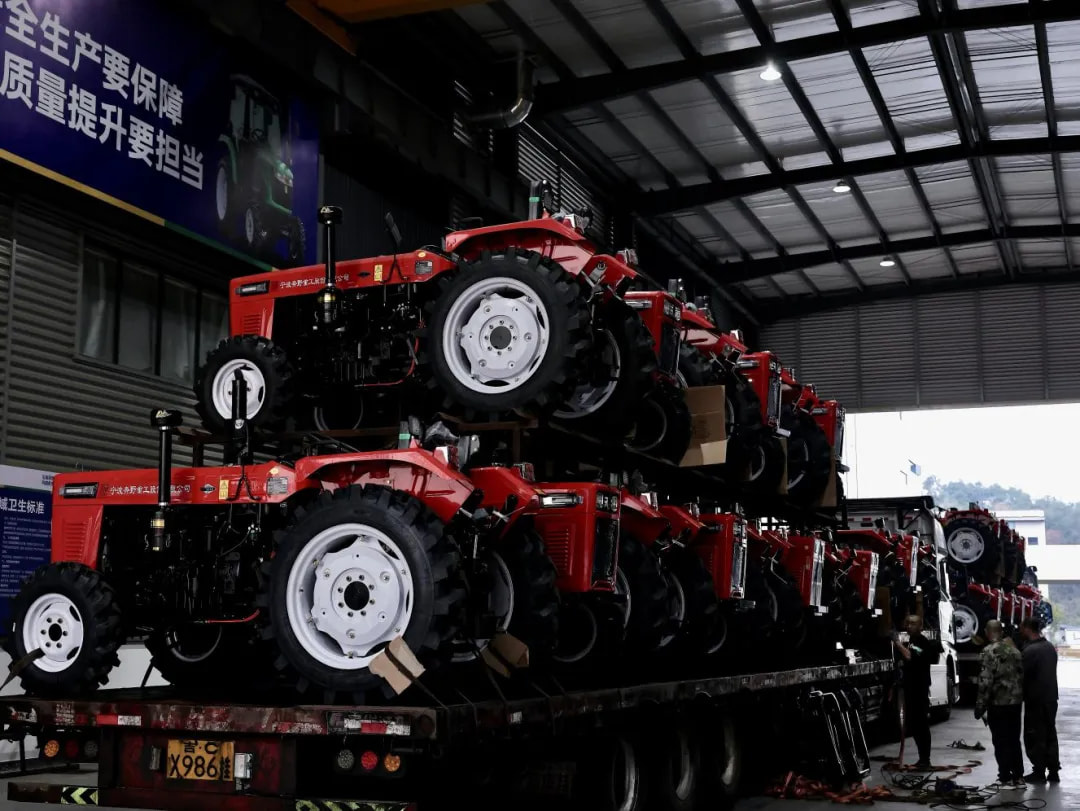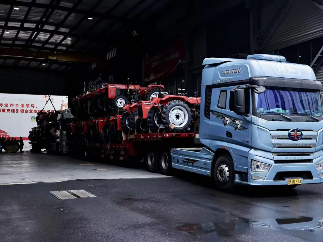 車間外的成品區(qū),一臺臺嶄新的奔野農機整齊排列,等待裝車發(fā)運。裝車師傅同樣忙碌不停,協(xié)調車輛、核對訂單、安排配送,確保每一批農機都能及時、安全送達客戶手中。“我們每天都有幾十臺農機發(fā)往各地,就是為了讓農機盡快抵達田間,不誤農時、助力豐收。” 物流部負責人介紹道。