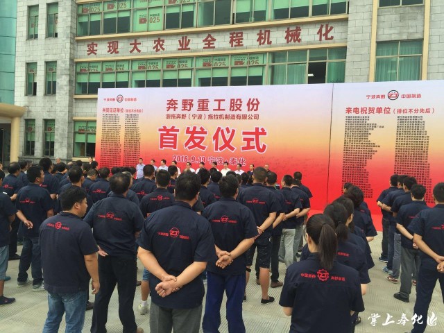 《奉視新聞》2016年9月19日報道 今天上午,浙拖奔野(寧波)拖拉機制造有限公司舉行產(chǎn)品首發(fā)儀式,由該公司自主設計的ZT504、ZT484兩款中型農(nóng)用拖拉機正式下線,首批40臺拖拉機在儀式后發(fā)往黑龍江省。市委副書記、市長高浩孟,副市長杜中權等出席儀式。