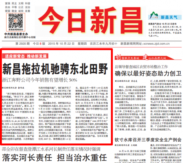 新昌新聞網(wǎng)記者 俞偉波 “再仔細(xì)檢查檢查,不能留有任何瑕疵。”昨日下午,浙江奔野拖拉機(jī)制造有限公司門前,質(zhì)檢人員正在給7臺農(nóng)用拖拉機(jī)進(jìn)行出廠前的“全身體檢”。原來,這7臺拖拉機(jī)將遠(yuǎn)赴青島,參加10月26日開幕的2015中國國際農(nóng)業(yè)機(jī)械展覽會。