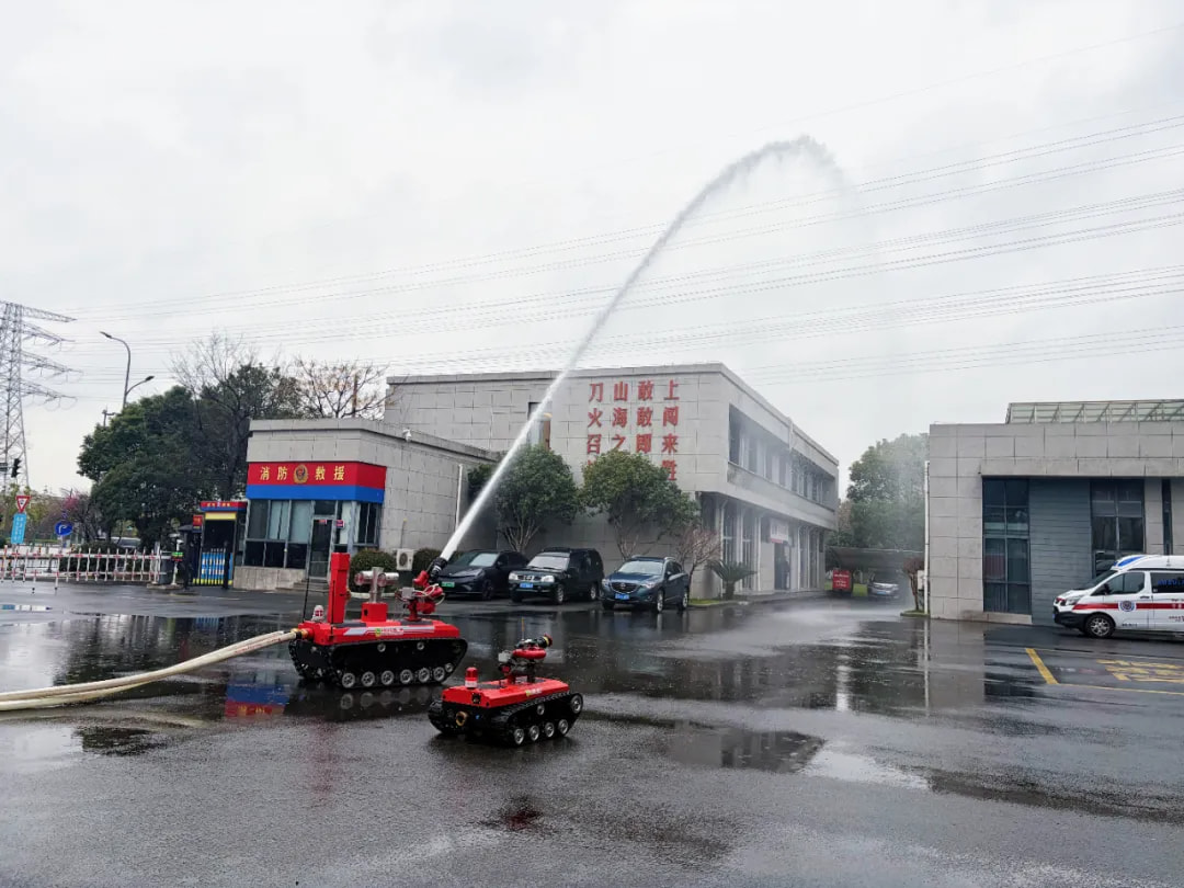 活動(dòng)現(xiàn)場(chǎng),奔野重工自主研發(fā)的消防履帶式滅火機(jī)器人重磅亮相,開展實(shí)戰(zhàn)化演示。這臺(tái)集偵察、滅火、氣體探測(cè)于一體的智能裝備,憑借強(qiáng)勁動(dòng)力與穩(wěn)定操控,在現(xiàn)場(chǎng)完成精準(zhǔn)行進(jìn)、水炮噴射等科目,遠(yuǎn)距離射程與高揚(yáng)程噴射效果震撼全場(chǎng),充分展現(xiàn)“科技消防、智慧救援” 的硬核實(shí)力。